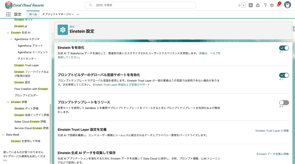 まずはじめに、Salesforce組織でEinstein Generative AIが有効になっていることを確認します。