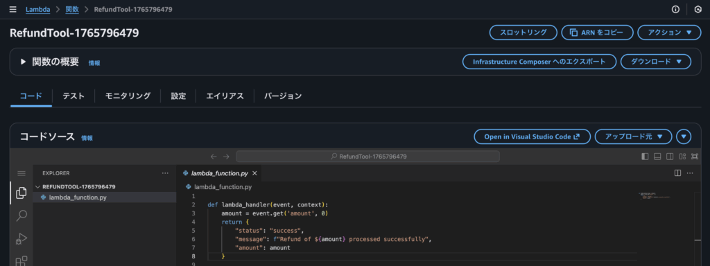- AIエージェントが「返金処理ツール(process_refund)」を使おうとする