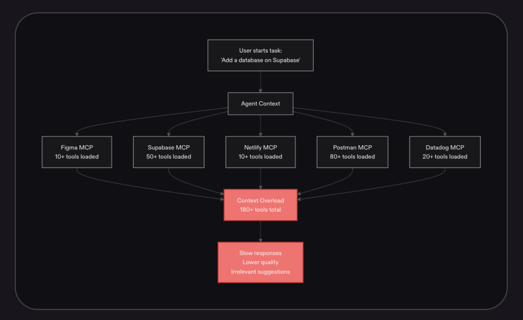 多くの知識やツール等を生成AIに連携させた状態の場合、数万トークンのコストが発生しコンテキスト過多の状況に陥ることがあります。