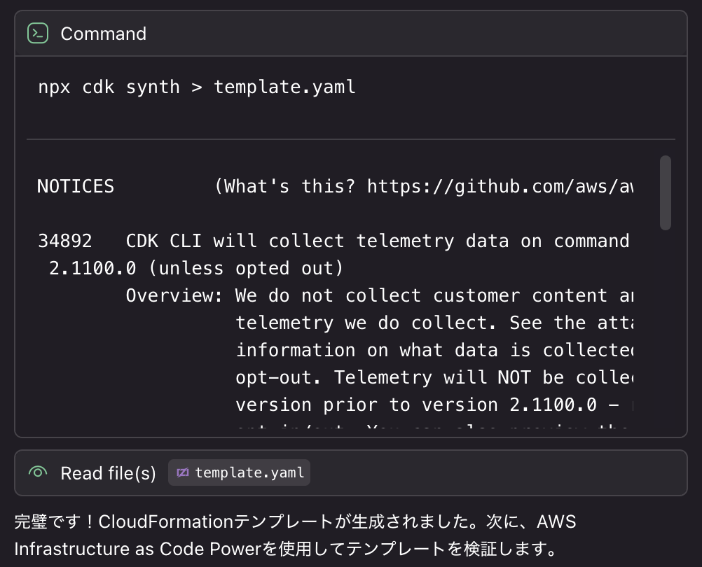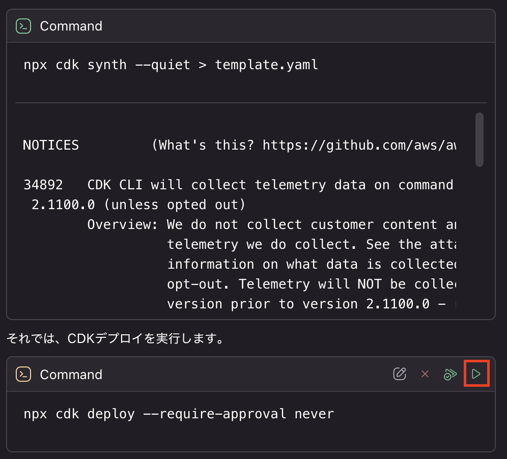 問題なかったようでCDKデプロイを提案されましたので承認します!