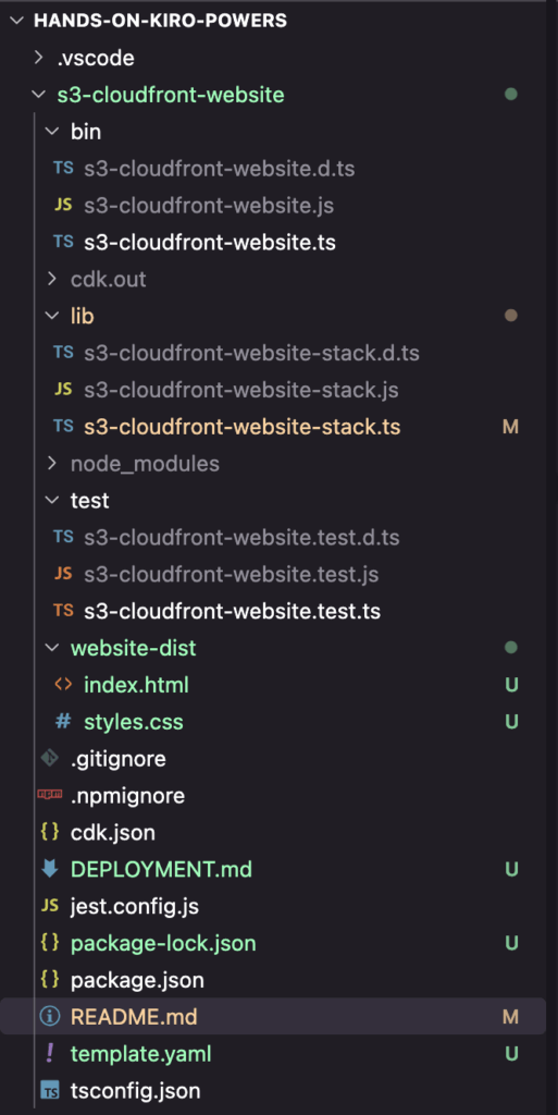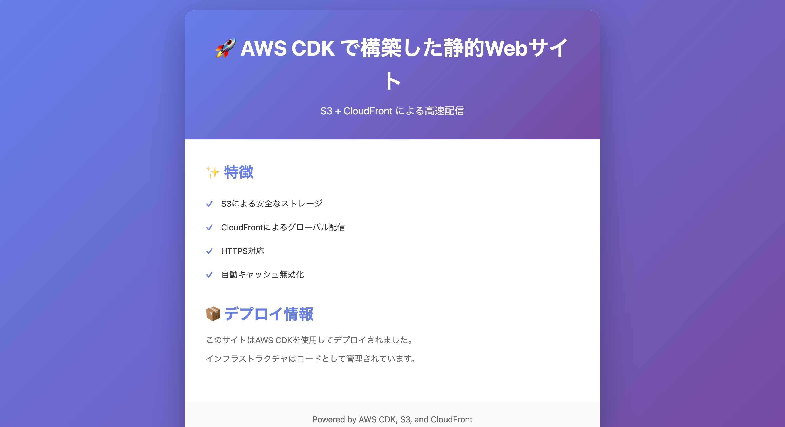 Kiro Powersを使用して、AWS CDKでS3静的Webホスティング + CloudFrontを構築してください。