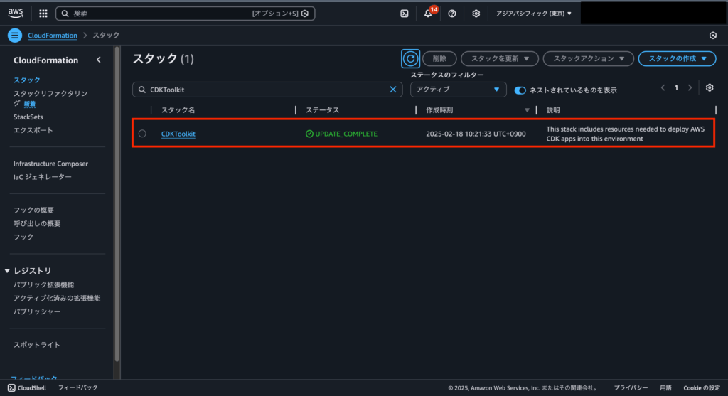 たしかにすでに「CDKToolkit」があるのでCDKブートストラップは不要ですね。