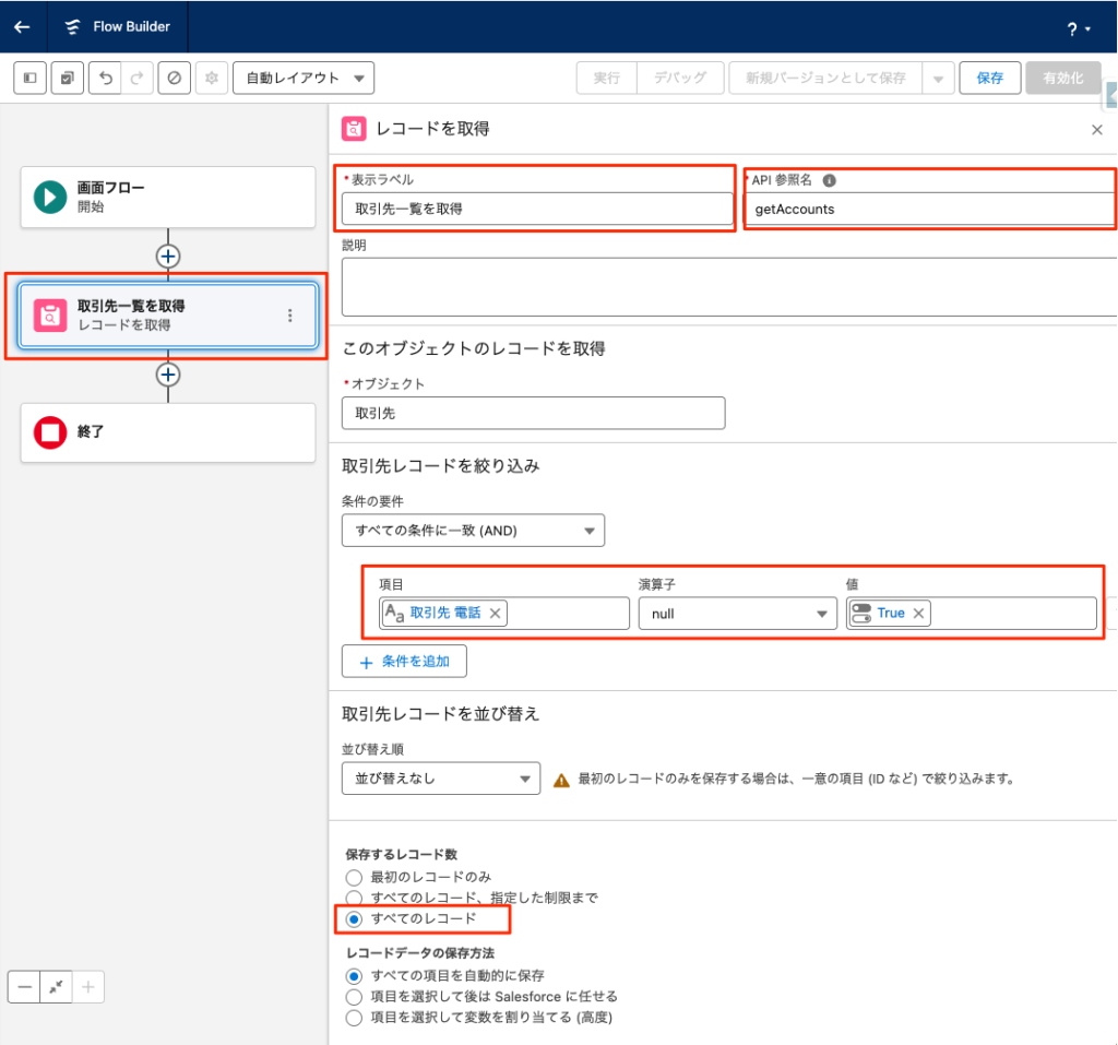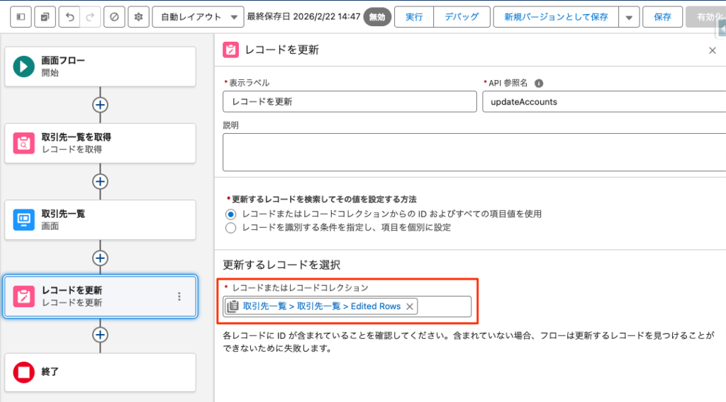 今回は取引先の電話番号を一括で編集するような画面フローを作成したいと思います。