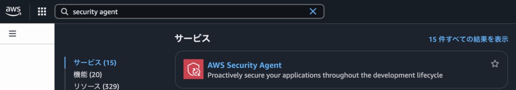 2. AWSマネジメントコンソールから「Security Agent」と入力し、検索結果から「AWS Security Agent」を選択