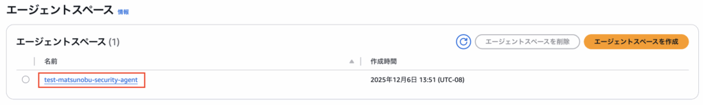 | エージェントスペース名 | test-matsunobu-security-agent |