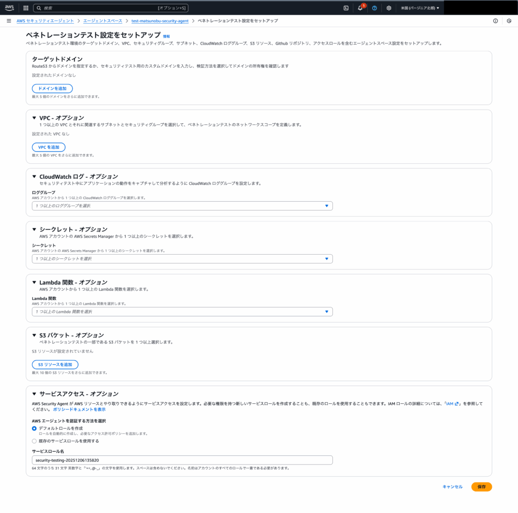 5. ペネトレーションテスト設定項目を入力し、「保存」を選択する