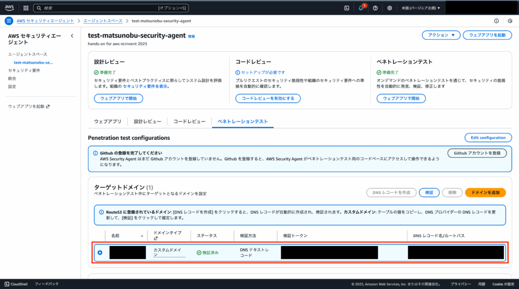 (*)ハンズオンのため、ターゲットドメインのみ(検証用ドメイン)を設定して検証しています。