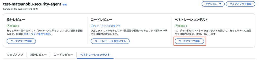 Security Agent用のWebアプリにてペネトレーションテストを実行することができます。