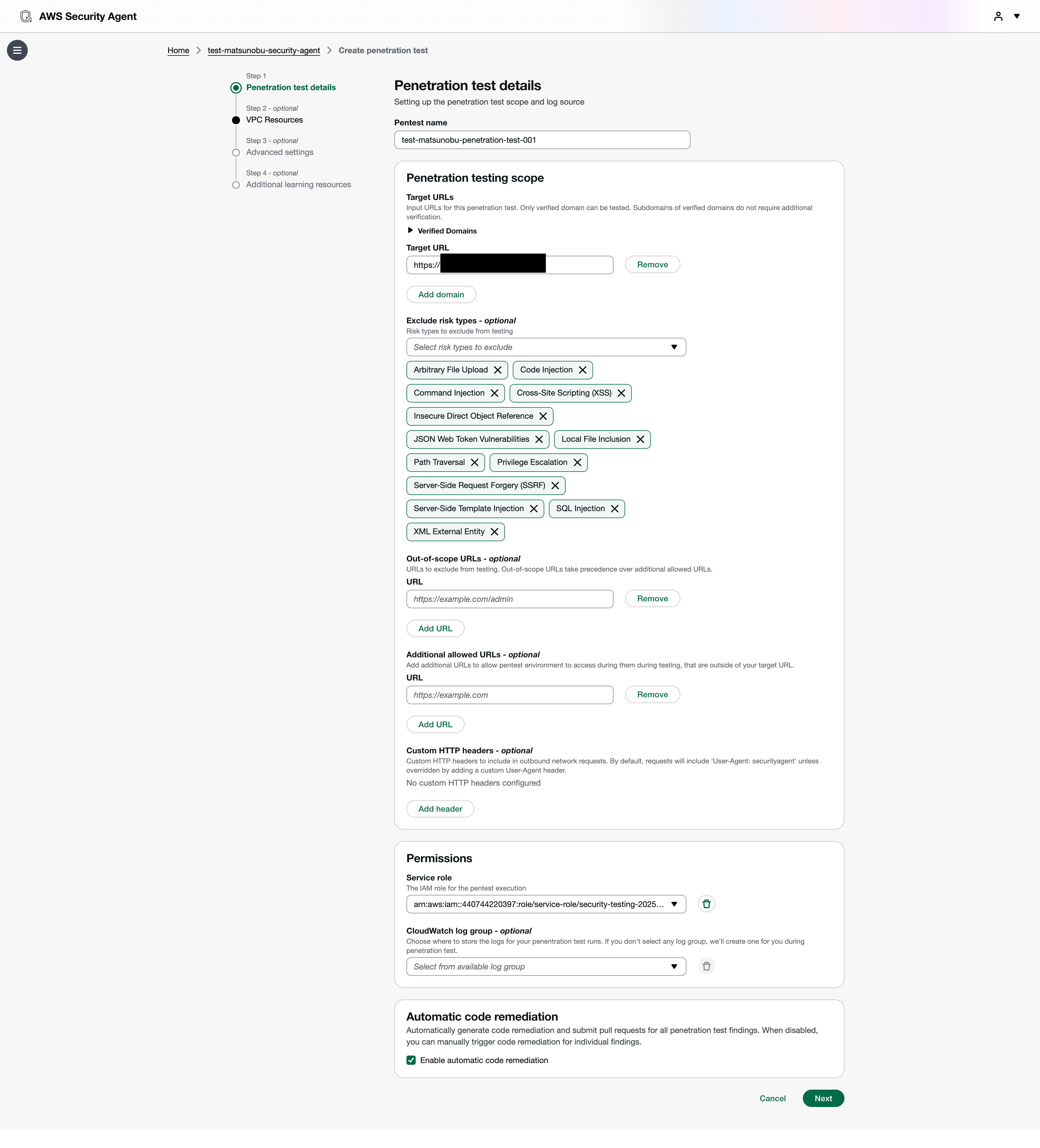 2. Step 2:ペネトレーションテスト機能の有効化 & 設定