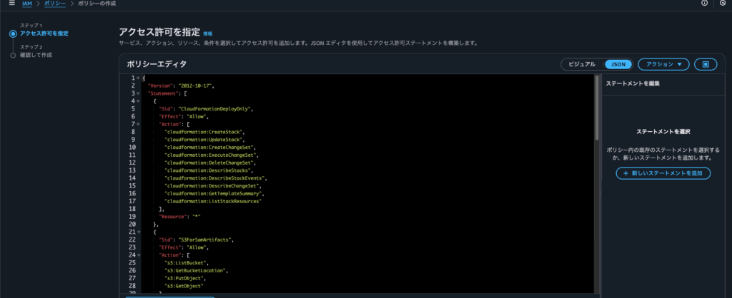 なお、envプロパティのDEPLOY_BUCKET_NAMEは先ほど作成したデプロイ先のS3バケットのバケット名を指定してください。