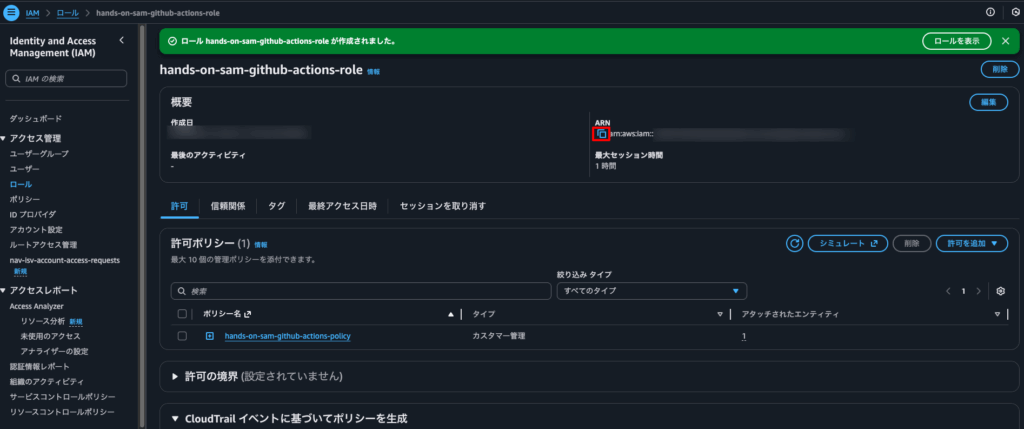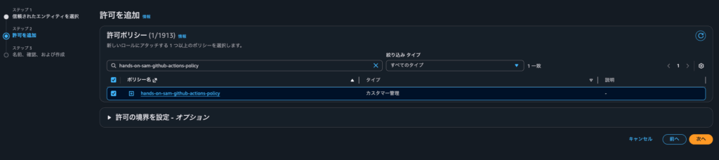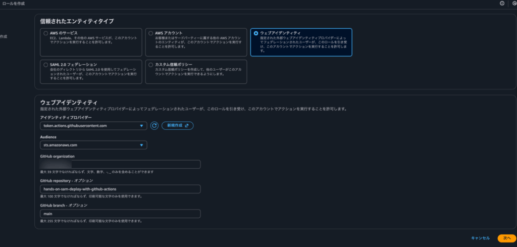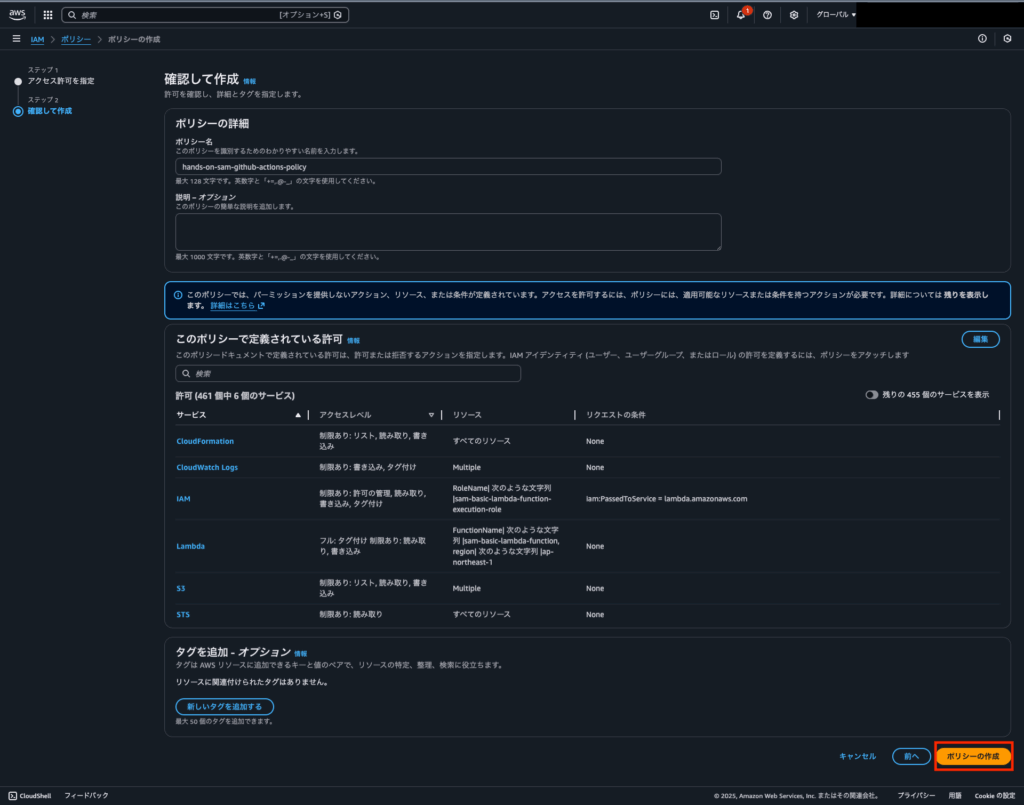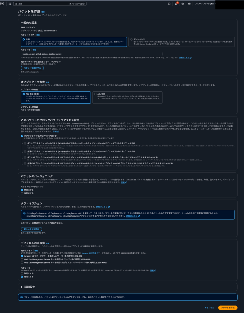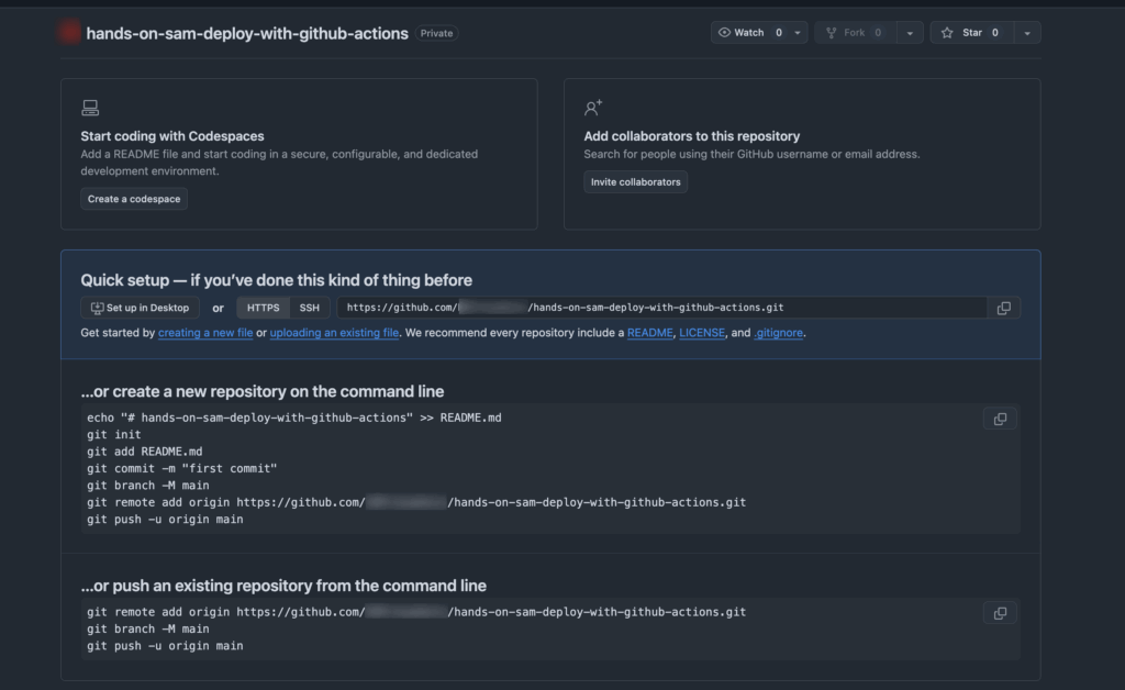 なお、今回はhands-on-sam-deploy-with-github-actionsという名前でリポジトリを作成します。