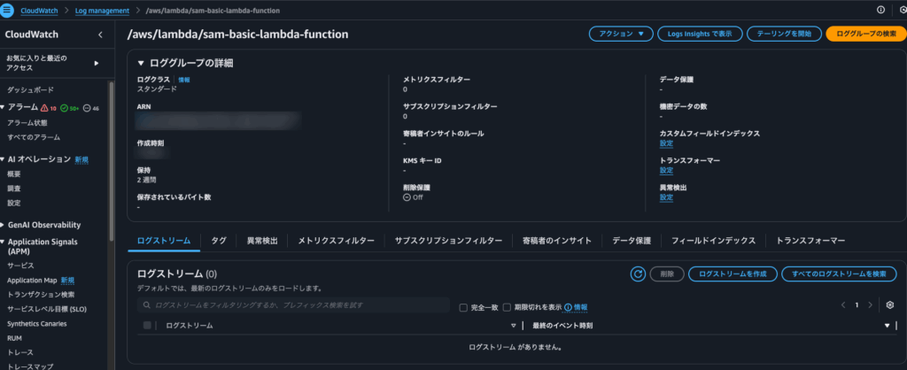念の為、AWSマネジメントコンソールでLambda関数、IAM RoleおよびCloudWatch Logsのリソースが存在していることを確認しましょう。