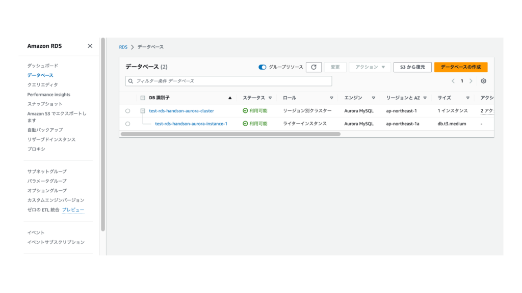 【RDS】https://ap-northeast-1.console.aws.amazon.com/rds/home?region=ap-northeast-1#databases: